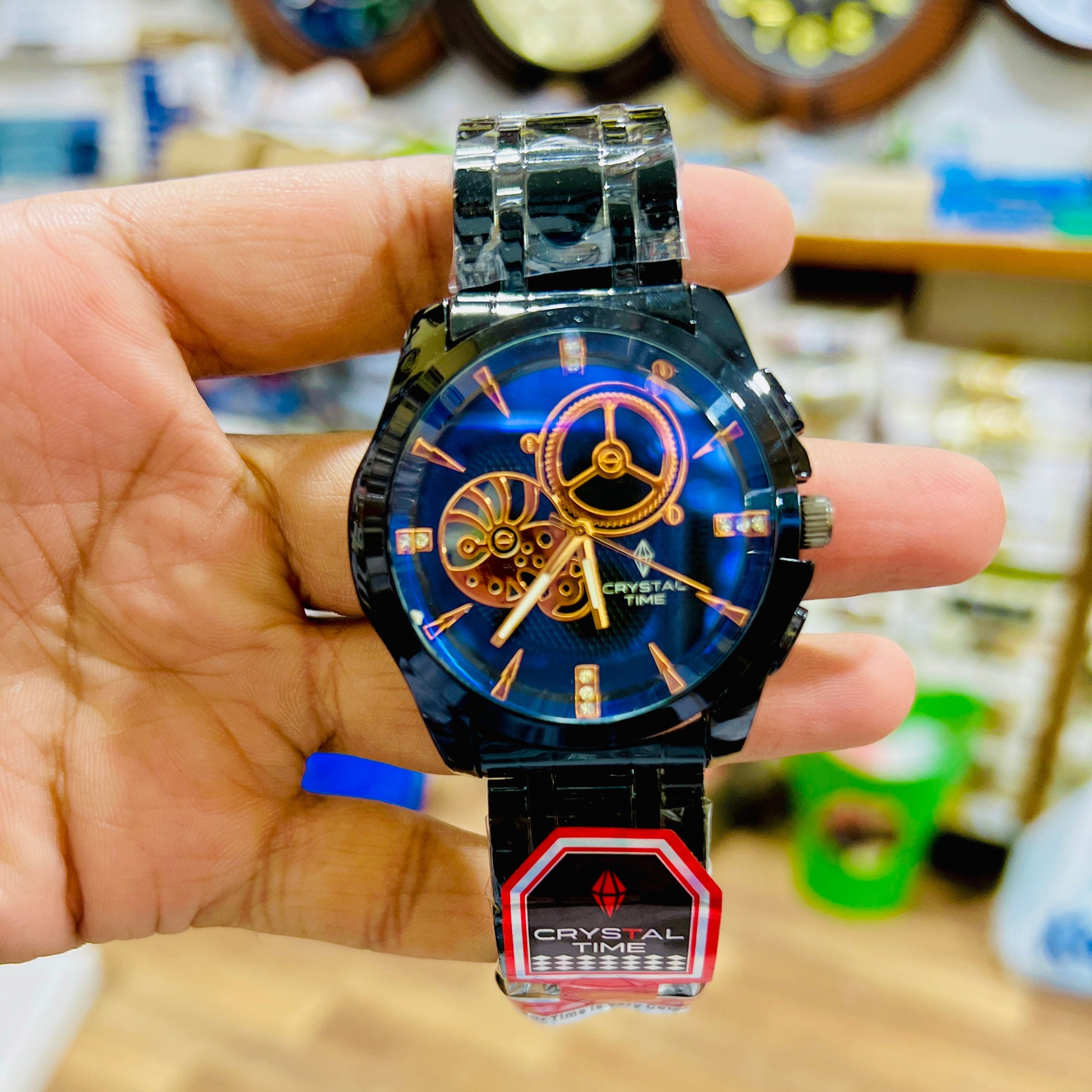 New crystal Time Skelton style silver and black watches